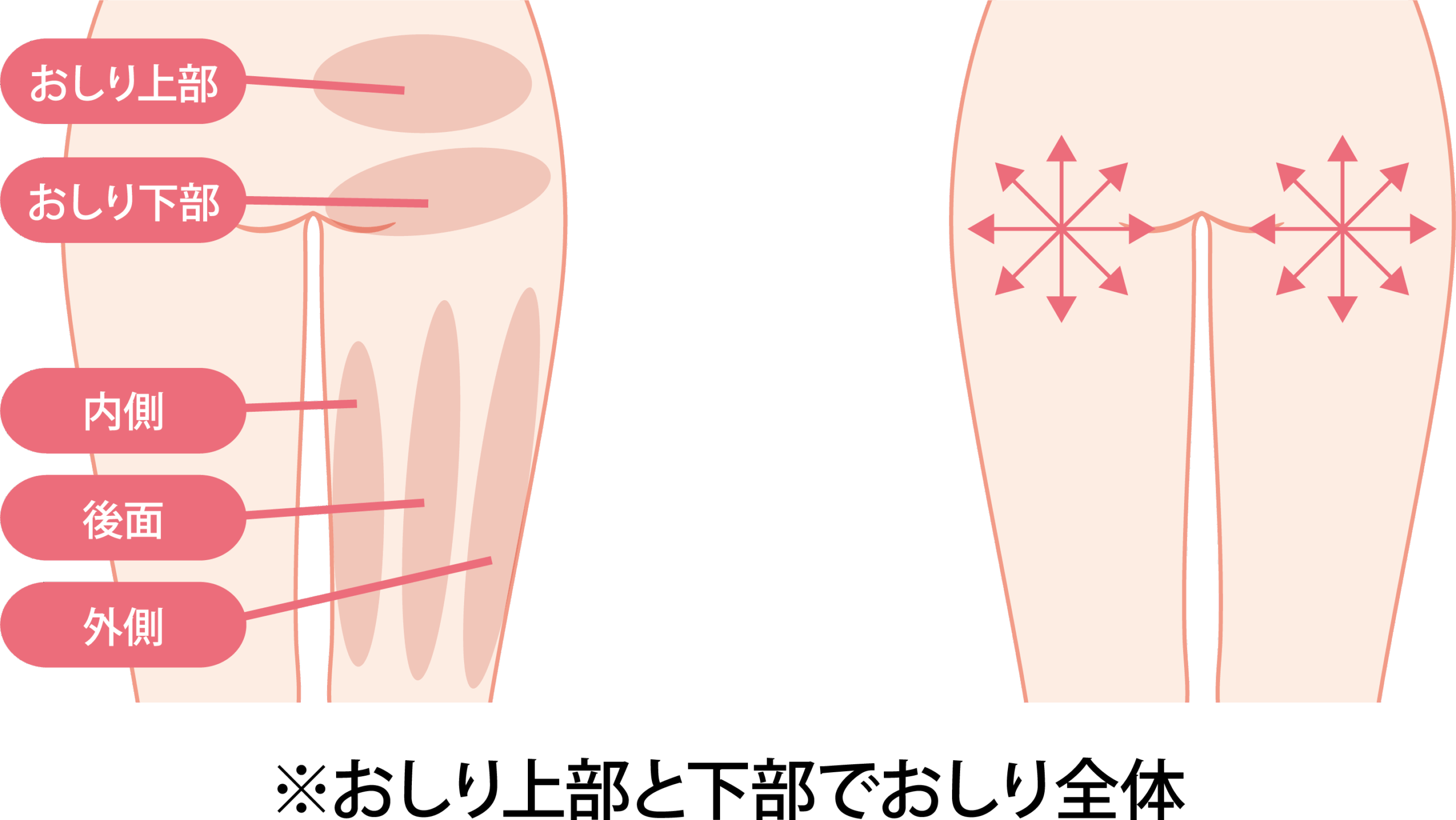 お尻の脂肪吸引は、大きく「上部」と「下部」に分けてアプローチします。