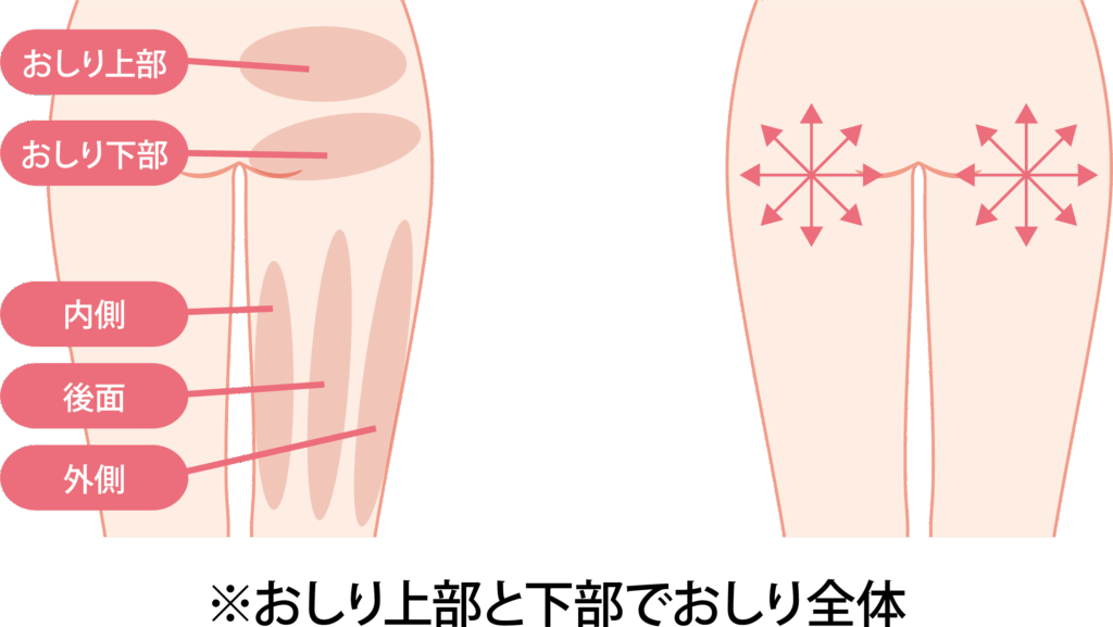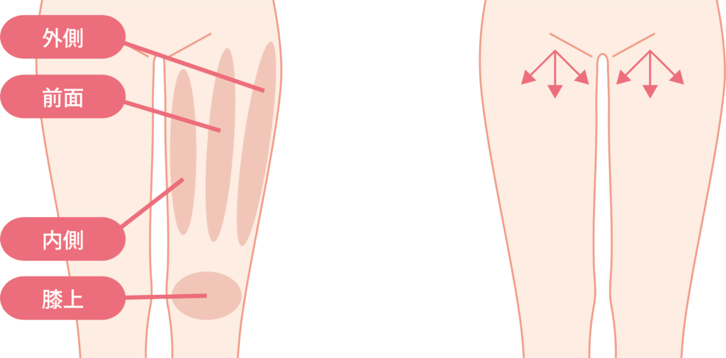 お尻下部からひざ上が太ももの脂肪吸引の範囲になります。