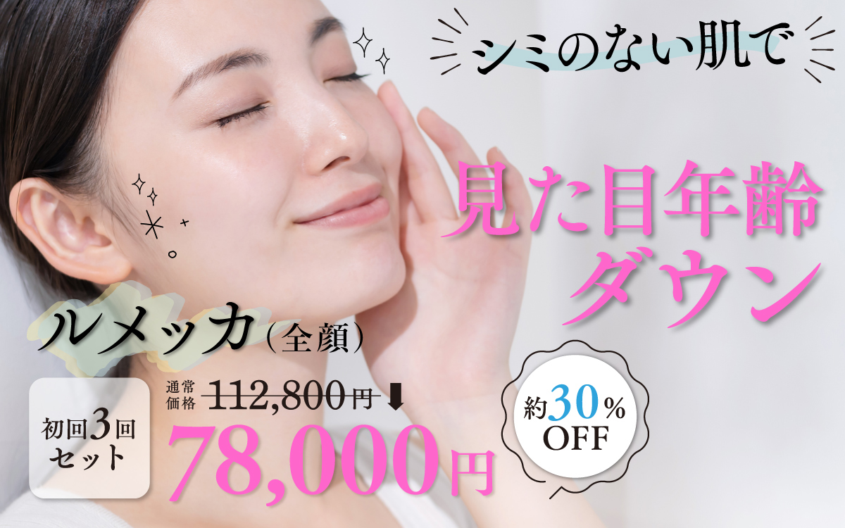 ルメッカは、しっかりした濃いシミ、薄いシミ、くすみ、そばかす、肌質改善などに適した新しい光治療(IPL)です。