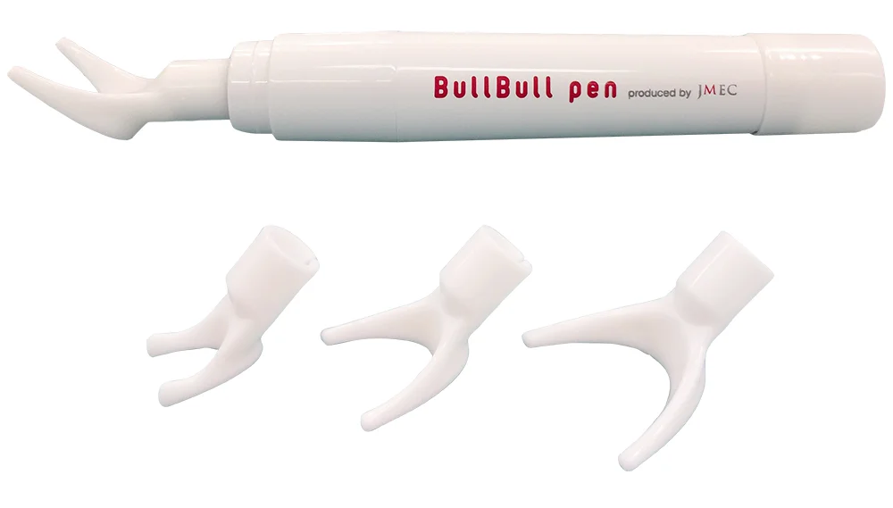 ブルブルペンは注射の痛みを軽減するペン型の機器で、肌に当てると振動が加わり、脳に痛みが伝わりにくくなる仕組みです。