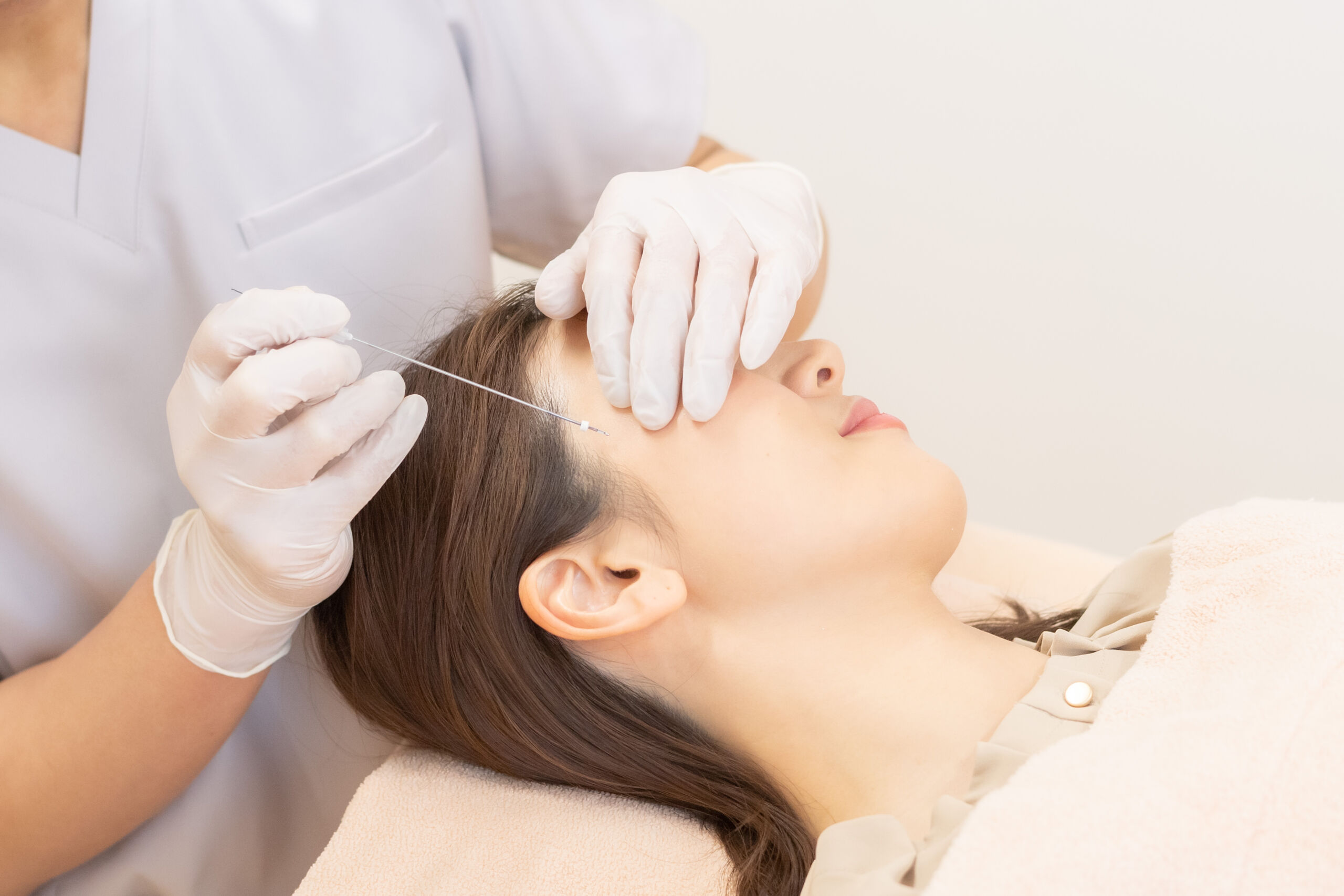 痛み痛みの感じ方は個人差がありますが、麻酔により痛みはほとんどありません。糸を挿入する際、不快感を感じる場合があります。