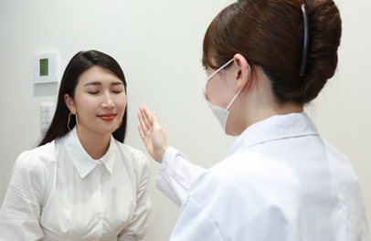 お客様お一人おひとりに合わせた脱毛をするため、ドクターによる診察、肌や毛の状態、毛質などのチェックを行います。 アトピーや光過敏症の方など、状態によっては照射テストを行う場合がございます。