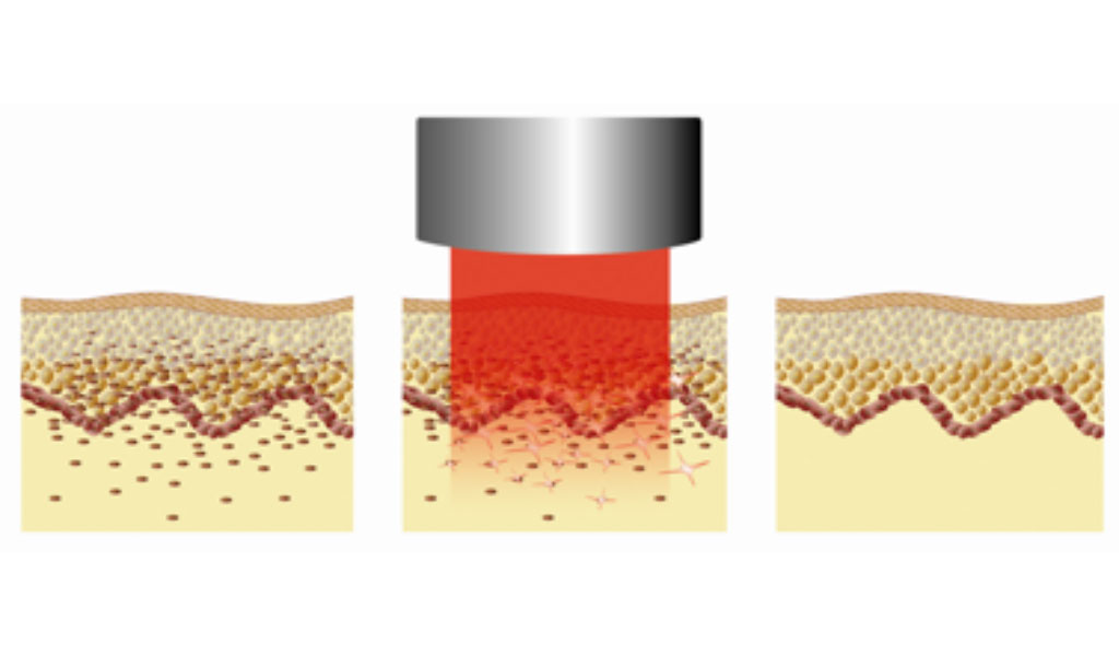 ロングパルス(064nmのレーザー)を照射することで皮膚表面の角質を除去し、 表皮のターンオーバーを活性化します。 ニキビ跡や毛穴の引き締め、小じわの改善にも効果的です。