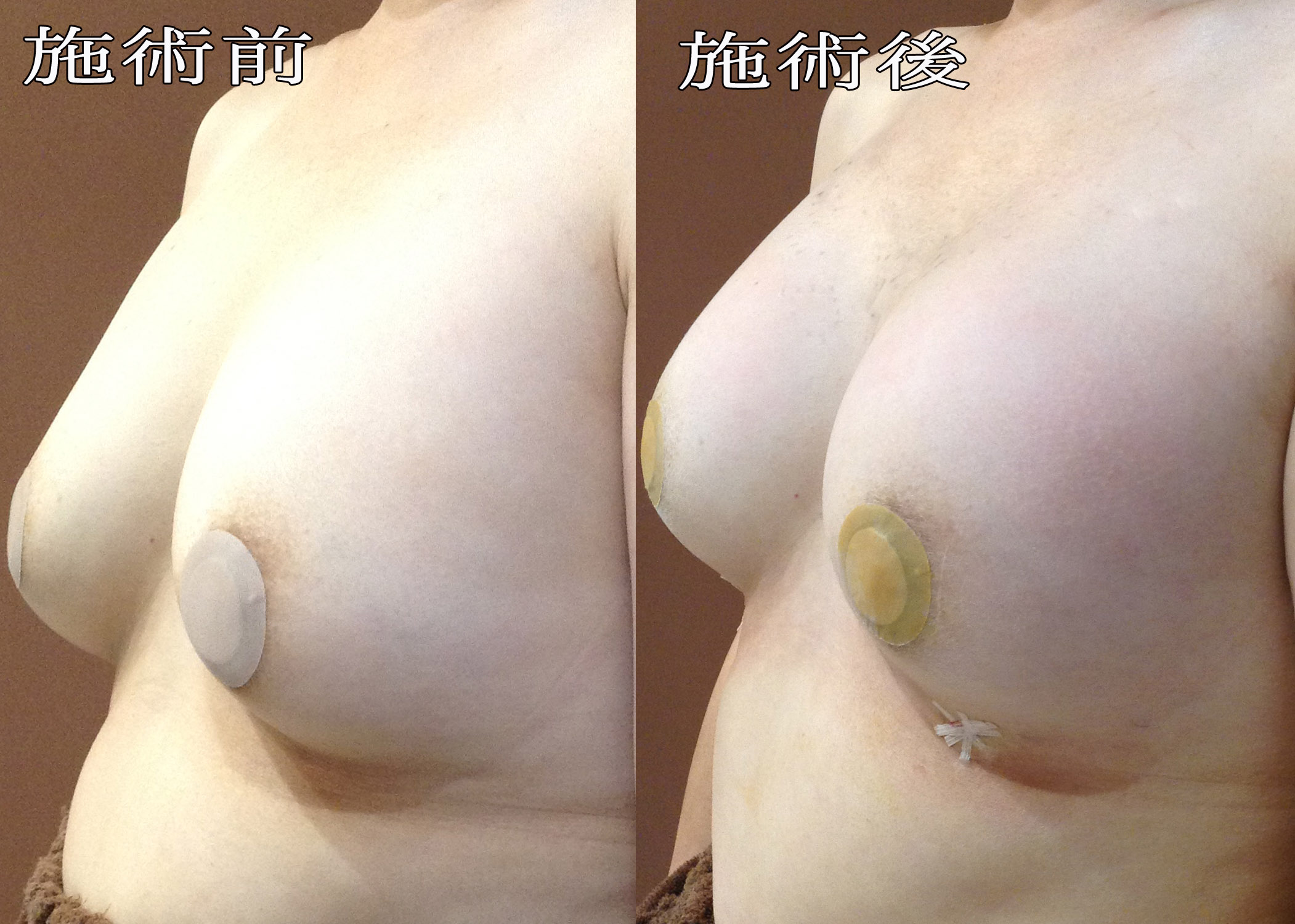 施術名:ヒアルロン酸豊胸 注入量:片胸100ccずつ(計200cc) お悩み:バストを大きくしたい 年代:50代 施術名:ヒアルロン酸豊胸 施術の説明: ヒアルロン酸豊胸とは、シワ取りや顔のプチ整形などでも使用されるヒアルロン酸をボリュームを出したい所に注入して、形や大きさを整える豊胸術です。初... 【もっと読む】